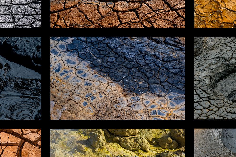 Those who think of Hverir often see steam and sulphur - menacing fumes escaping from the earth. But if you bend your knees for a moment, you will see something else. Here, right at your feet, the earth draws lines. The mud dries, cracks, curls and forms patterns reminiscent of craquelé in old porcelain, of the wrinkles of time.