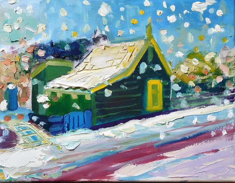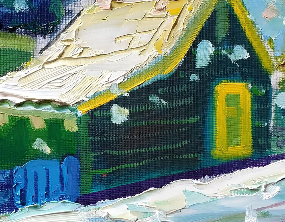 Authentic small cottage, Schermerhorn. Museum of the smallest cottage. Oil painting on canvas