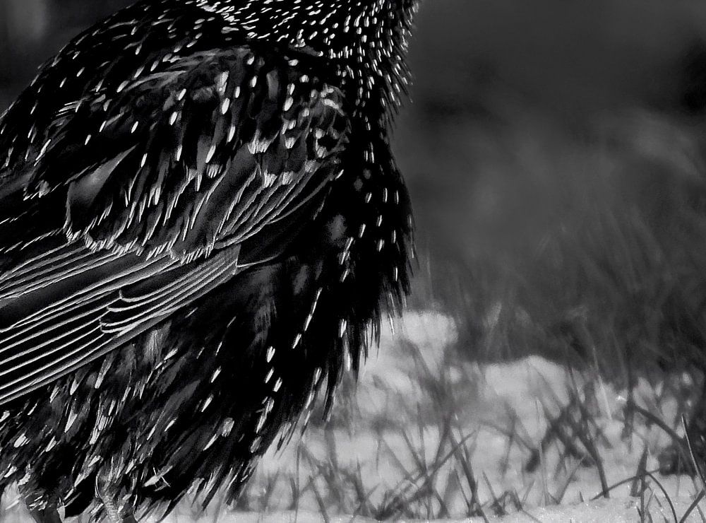 Buy this bird art The starling (black and white) by Maickel Dedeken on canvas, ArtFrame, poster and wallpaper, printed on demand in high quality.