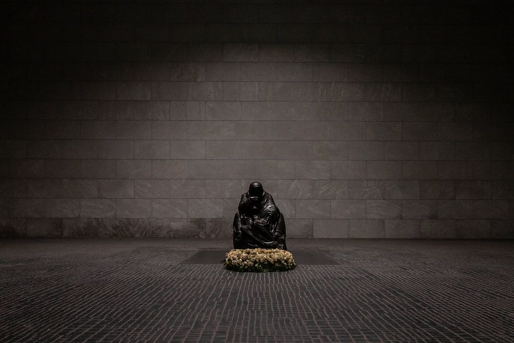 The sculpture of Käthe Kolwitz, mother with dead child, is a moving indictment of the war and senseless suffering. A work by Kolwitz also stands in the Vladslo cemetery in West Flanders.