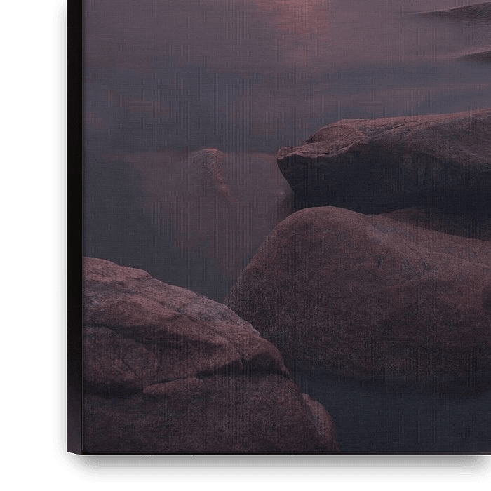 Buy the photo The stones go into the distance under the pink sunset water of Lake Baikal, vertical photo by Michael Semenov on canvas, ArtFrame, poster and wallpaper, printed on demand in high quality.