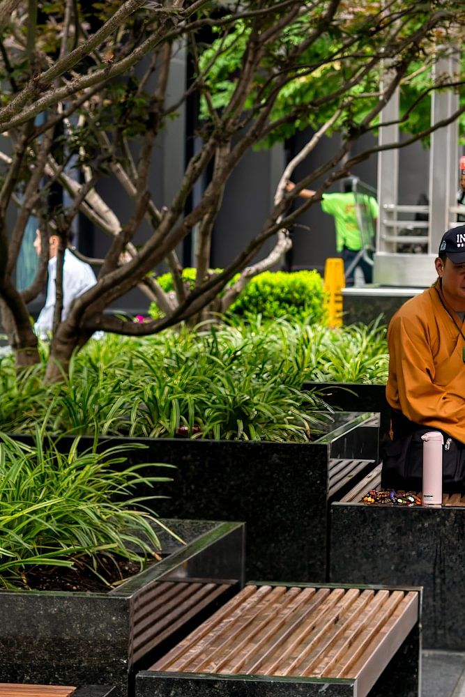 New York City is also known as the 'Big Apple' and 'The City That Never Sleeps'. The neon-lit Times Square, the yellow taxi's and the Statue of Liberty symbolise the city, but of course are far from being all the things you see. The streets are full of treasures and expressions of people through art, architecture and culture. This man, as a monk, sits on the bench talking on the phone, which almost gives a distorted view.