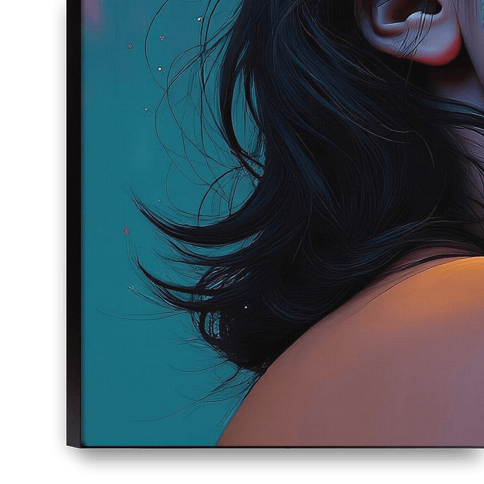 Imagine a woman, enveloped in an aura of dreamlike colours, taking you on a journey through the limits of your imagination. This artwork is not just a painting; it is an experience, a window into a…