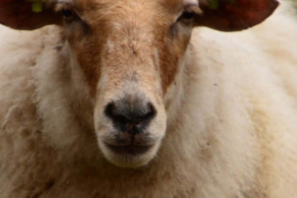 A sheep looks sheepishly into the lens, as if I am one of them again