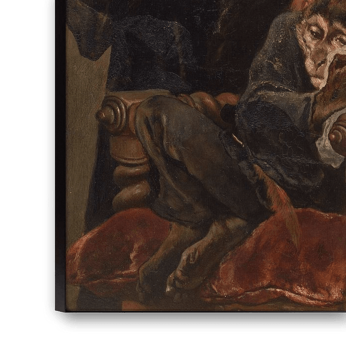 Two monkeys in a painting, one in pain because his tooth has just been pulled while the other has just had it pulled, the dentist. Michel Marie Charles (Karel) Verlat (Antwerp, 24 November 1824 - there, 23 October 1890) was a Flemish painter.