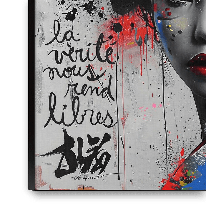 The painting "La Vérité Nous Rend Libre" features a Geisha on an inner quest for truth. The print captures the grace and determination of the Geisha, illustrating her spiritual journey. The work evokes the liberating power of truth, suggesting that self-knowledge can lead to true freedom. The use of subtle colours and refined…