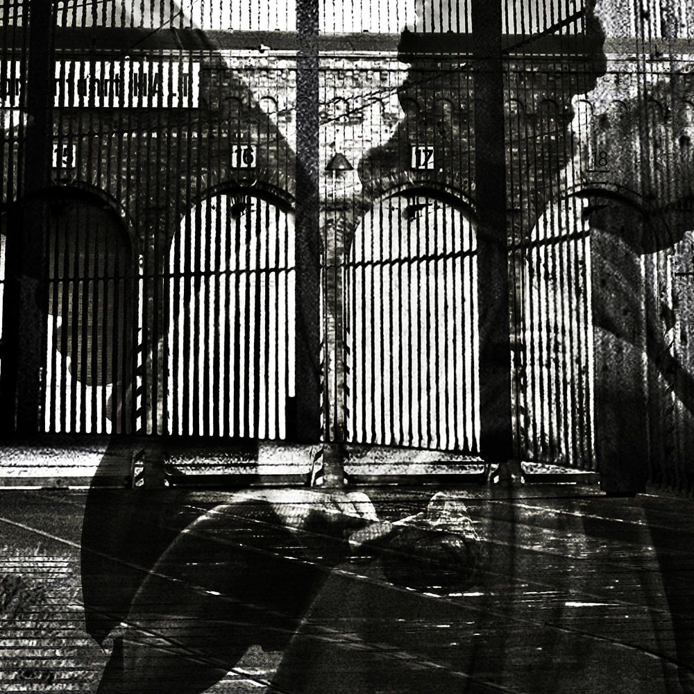 This artistic, urban façade with the figure of an arriving angel is an abstract photo collage with a mystical aura and imaginative atmosphere.