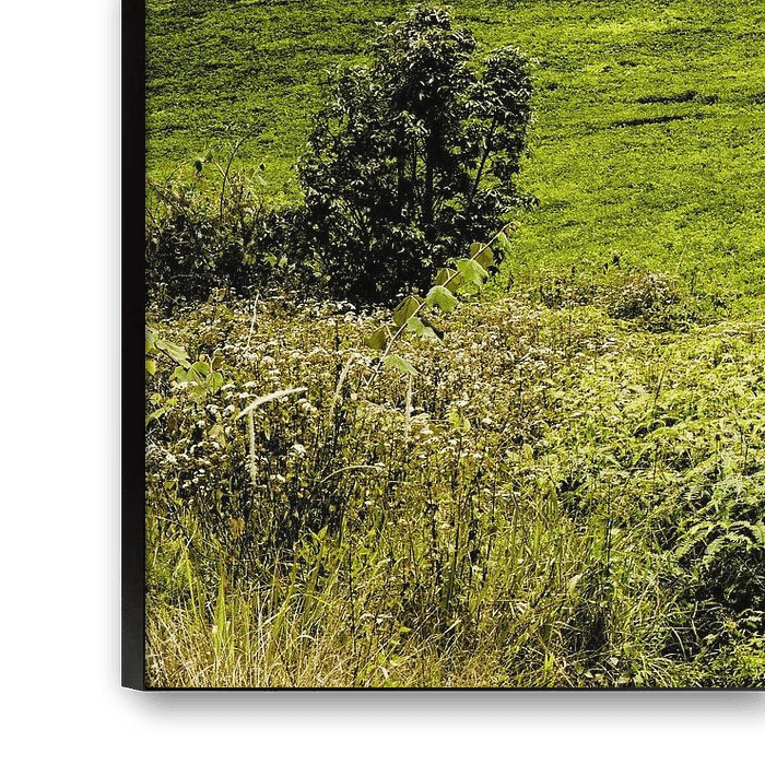 This photo highlights the simple, soothing beauty of the Ciwidey tea plantations near Kawah Putih. The eye is lost in the infinite shades of green that cover the hills, creating an almost hypnotic landscape. The perfectly tended rows of tea plants form delicate lines that follow the natural curves of the land. A few isolated trees stand elegantly amidst the plantations, like guardians watching over this sea of vegetation. In the foreground, ferns and wild plants enrich the scene, reminding us of the harmonious cohabitation between wild nature and agricultural cultivation. The diffuse light, filtered through a slightly hazy sky, brings out the intensity of the green, creating an atmosphere that is both invigorating and peaceful. Not only does this landscape illustrate the importance of tea in Indonesian culture and economy, it also embodies a place of contemplation and serenity, where you can appreciate the calm rhythm of nature.