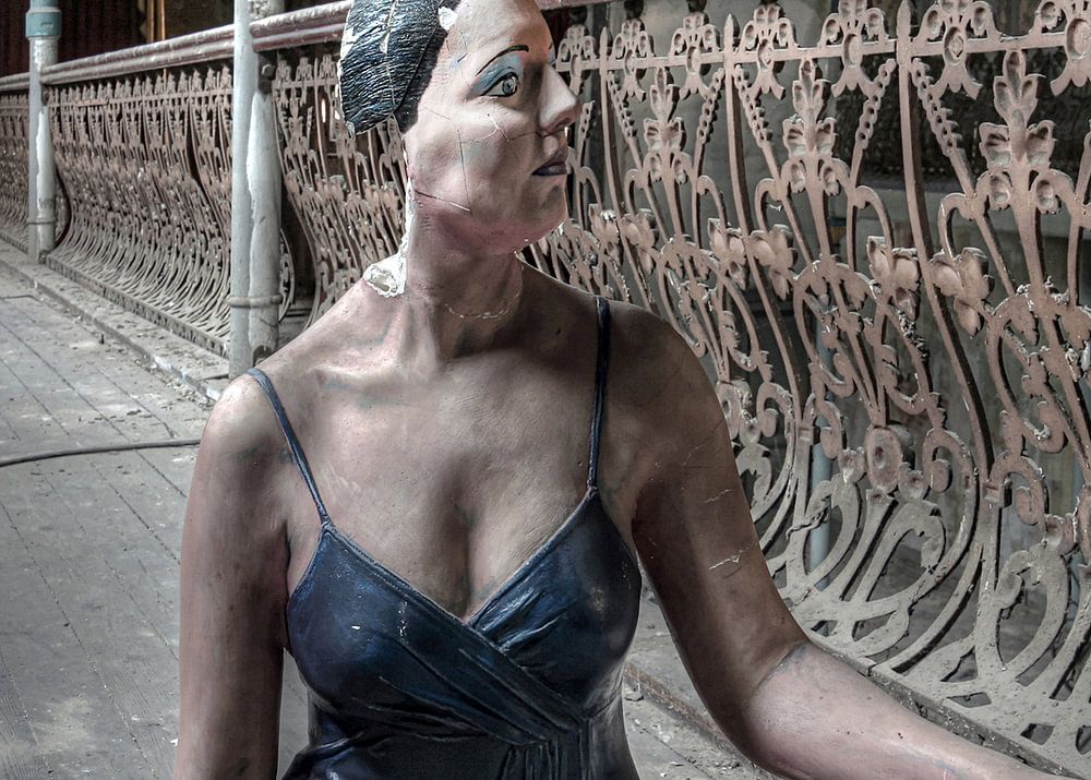 Toneel relikwie (mannequin) in verlaten theater ergens in Europa