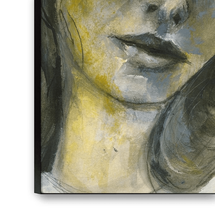 Portrait with golden yellow glow. Peace and simplicity radiate from the portrait. Moment of contemplation and dwelling on the moment.