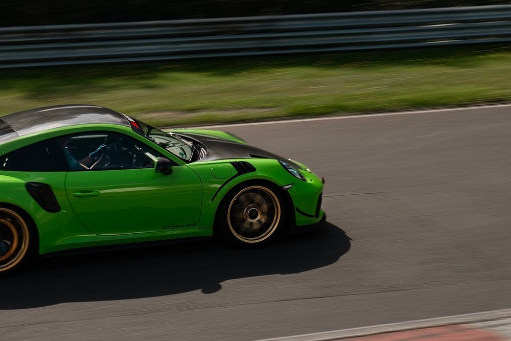 Buy the photo They see me rolling - green Porsche by Mäbel Seelen on canvas, ArtFrame, poster and wallpaper, printed on demand in high quality.