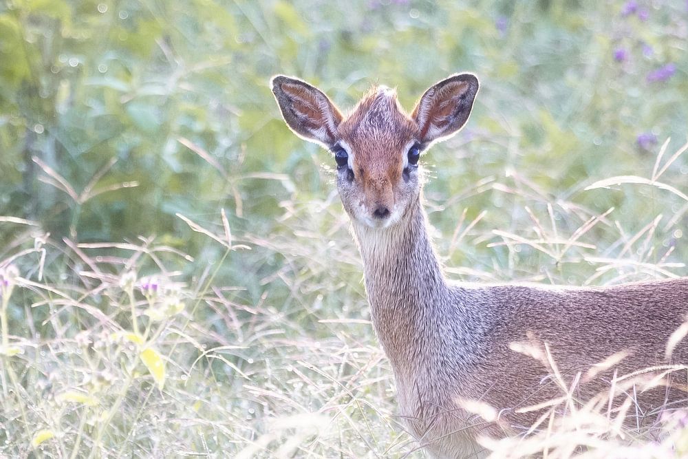 The Dikdik is the smallest species of deer. They come to about's knee height, are lightning fast but fortunately also very curious. Just like this little Dikdik that I photographed on a beautiful morning in Ndutu nature reserve in Tanzania. It lies on the southern side of the Serengeti.