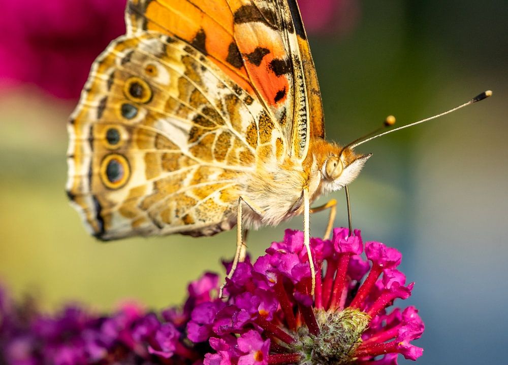 Buy this butterfly art Thistle butterfly on a summer lilac in the garden by Animaflora PicsStock on canvas, ArtFrame, poster and wallpaper, printed on demand in high quality.