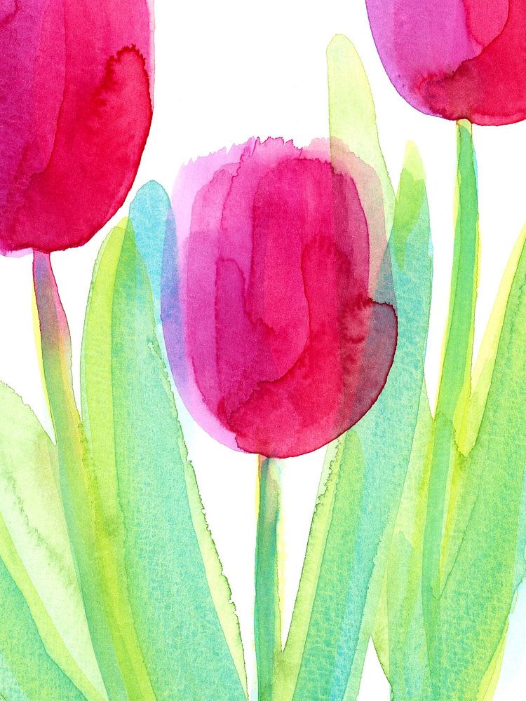 Buy this flower art Three Pink Tulips Watercolour Painting by Karen Kaspar on canvas, ArtFrame, poster and wallpaper, printed on demand in high quality.