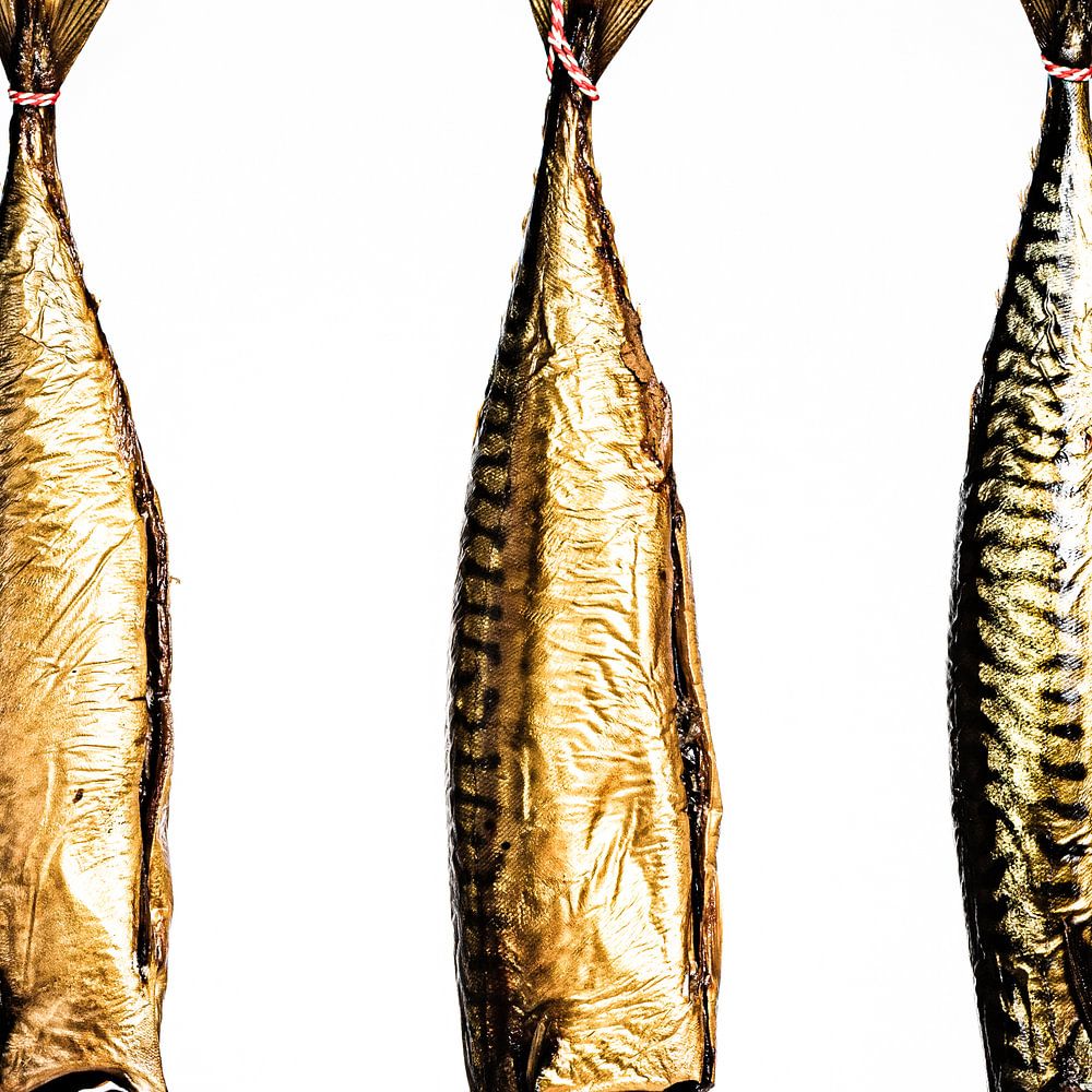 Buy this still life Three mackerels hanging from kitchen rope by MICHEL WETTSTEIN on canvas, ArtFrame, poster and wallpaper, printed on demand in high quality