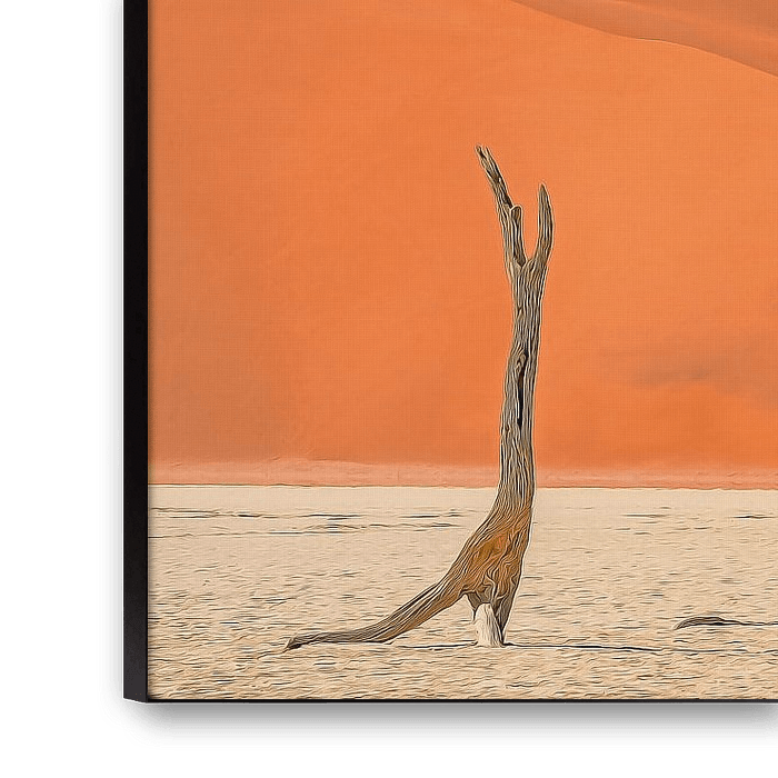 The saplings are in a valley surrounded by giant orange sand dunes, (called "Deadvlei") and in them are dozens of saplings.