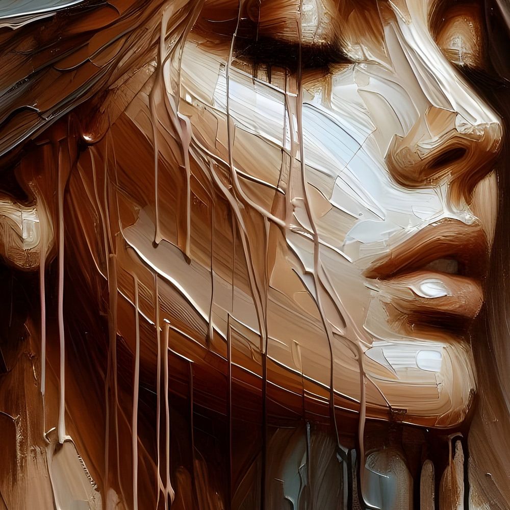 A woman with long hair in the wind floats like a silent thought through a veil of beige, brown and gold. Her gaze is absent, as if she is between worlds - half here, half somewhere far away. The warm colours embrace her like a soft glow, while the darkness of her hair brings depth and contrast. The painting breathes silence, longing and an elusive melancholy. A visual poem that suggests more than it reveals.