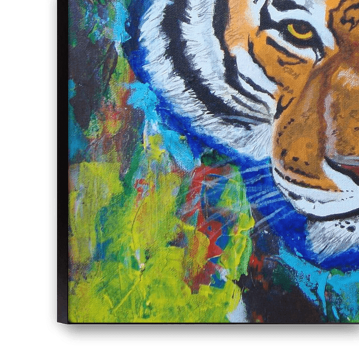 Dierenportret met expressieve abstracte achtergrond waarvoor ik een paletmes gebruikt heb.Acryl op canvas.