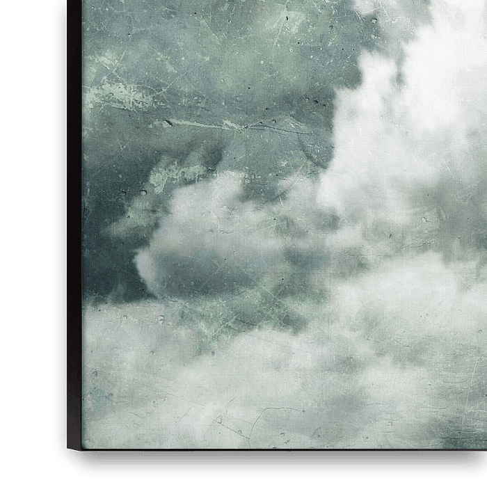 This surreal and dreamlike image features a woman's face seamlessly blending into a sky filled with billowing clouds. Her features, though delicate and expressive, appear to dissolve into the mist, as if she is becoming one with the sky. The background consists of textured clouds and a soft blue sky, enhancing the ethereal and…