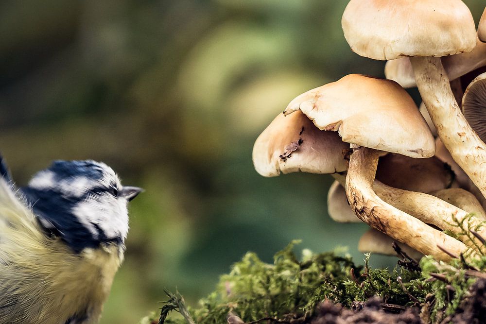 Tit to mushroom group by Jürgen Schmittdiel Photography
