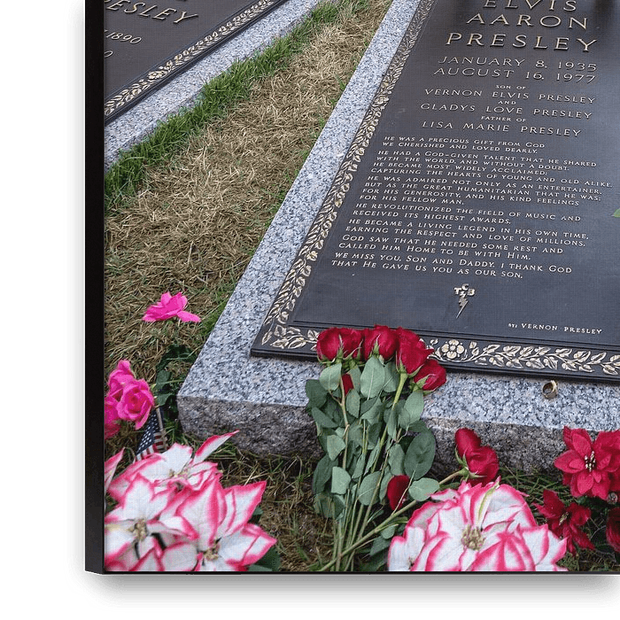 Buy this flower art Tomb of Elvis Presley at the Graceland estate by Eric van Nieuwland on canvas, ArtFrame, poster and wallpaper, printed on demand in high quality.