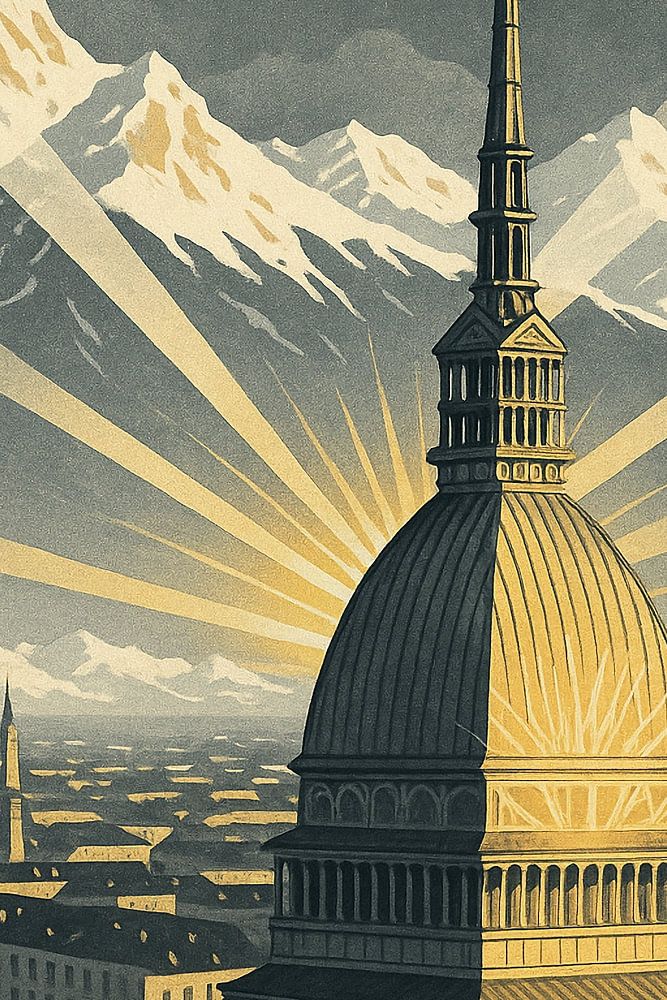 This Torino Art Deco poster highlights the striking Mole Antonelliana set against the dramatic backdrop of the Italian Alps. Rendered in muted gold and grey tones, the design blends elegance and strength, reflecting Turin’s cultural and architectural significance. Radiant beams of light emphasize the city’s historic skyline, while the surrounding mountains symbolize grandeur and stability. Inspired by classic European travel posters, this piece combines geometric Art Deco styling with timeless Italian charm. Perfect for adding sophistication to any wall, it captures the spirit of Turin as a city of history, innovation, and design. Ideal for display in a living room, study, or creative workspace, it evokes both nostalgia and inspiration. This Torino wall art is also a wonderful gift for travelers, art enthusiasts, or anyone with a passion for Italy’s northern cities. With its balance of boldness and elegance, it makes a lasting statement piece.