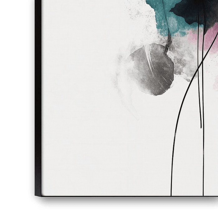 The artwork shows a feminine silhouette, composed of ink spots in dark, aquamarine blue and pink tones. Her face is in profile, with closed eyes and a painful, melancholic expression. The organic, fluid shapes and contrasting colors suggest an internal struggle, a sense of split and a complex emotional state.