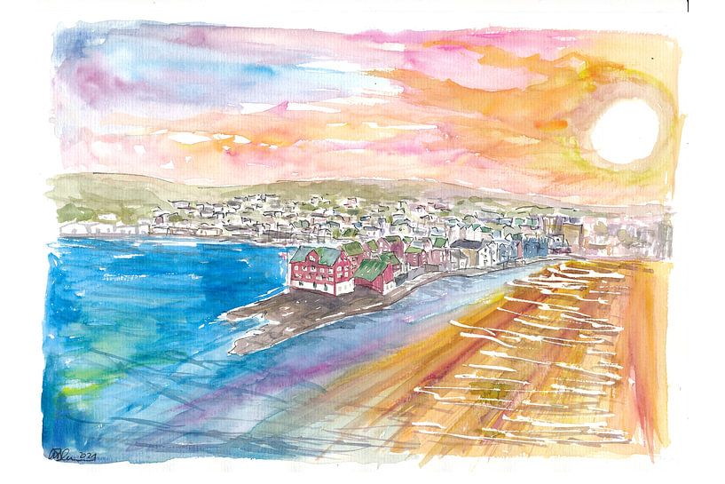Buy this painting Torshavn harbour scene Faroe Islands Tinganes Streymoy by Markus Bleichner as a reproduction on canvas, ArtFrame, poster and wallpaper, printed on demand in high quality.