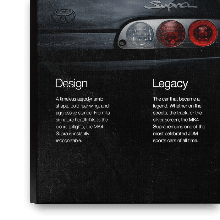 Buy this digital art artwork Toyota Supra MK4 Magazine by Ali Firdaus as a reproduction on canvas, ArtFrame, poster and wallpaper, printed on demand in high quality.