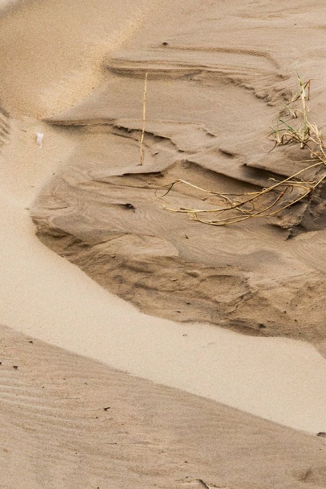 Traces in the sand blow away in a matter of seconds. The sand is a contemporary witness to constant change. The same grains of sand incessantly form new traces, patterns and surfaces. They remain true to their flexibility and know that they have come to change and let go. An eternal letting go of the state they have just reached. Should we humans learn from them?