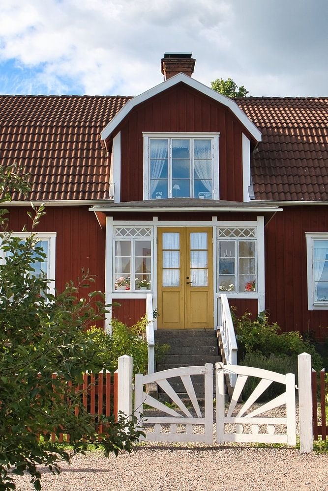 About "Traditional Swedish red house in Smaland. Surrounded by a red fence. Sweden"
