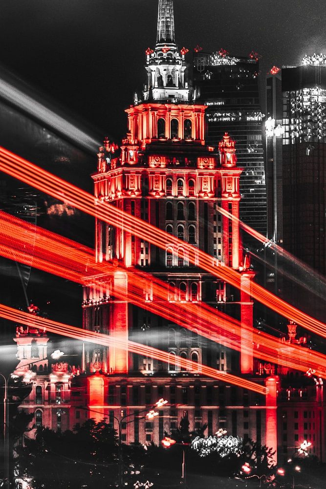 Black and white touch of modern city nightlife