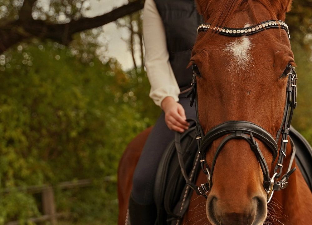 Training with the bay Oldenburg mare on a riding arena by Babetts Bildergalerie
