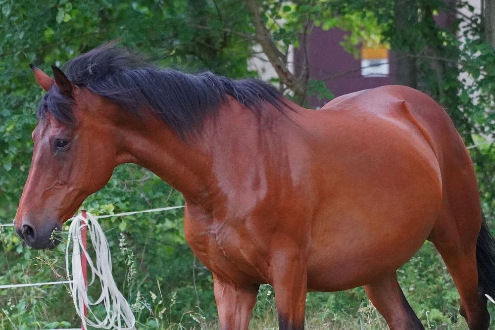 Buy this landscape artwork Trakehner Feldmeyer in the pasture by Babetts Bildergalerie on canvas, ArtFrame, poster and wallpaper, printed on demand in high quality.