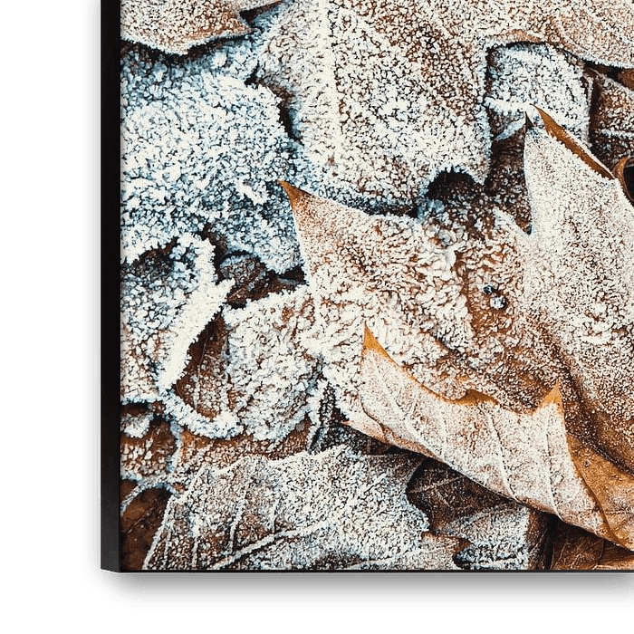 Transience nature maple leaves with frost foliage in winter on forest floor