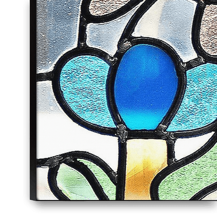 This is a stained-glass window which I made myself, one of my inspirations for this included children's drawings and naive art. And I have made windows with flora & fauna in them before.