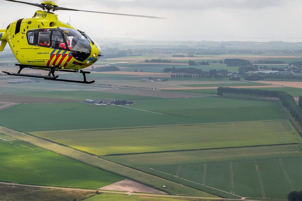 Trauma helicopter above typical Dutch landscape by Jimmy van Drunen