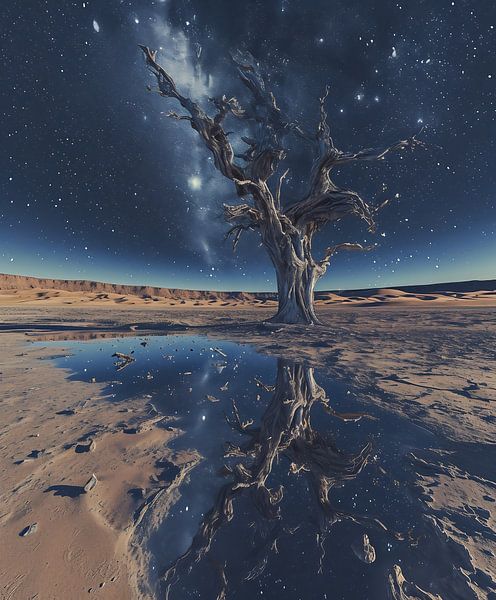 Buy this landscape artwork Tree at full moon by fernlichtsicht on canvas, ArtFrame, poster and wallpaper, printed on demand in high quality.