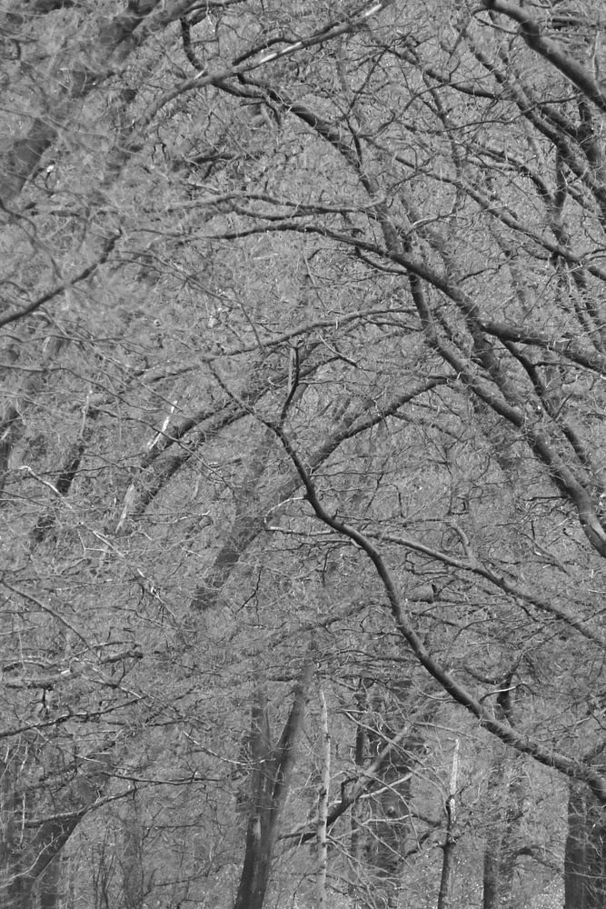 This picture made during a nice walk on the Hoge Veluwe in the Netherlands. Saw these special tree branches with a small hill in front of them. Made in the Netherlands. Recording in black and white
