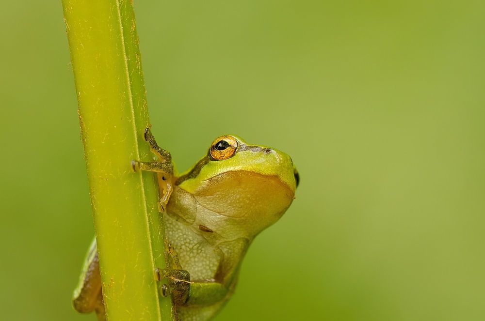 The tree frog is found in a large part of Europe and is the only species from the family tree frogs that is found in Belgium and the Netherlands. The tree frog is about 3 to 4 centimeters long, the females are on average slightly larger than the males up to 4.5 cm.
