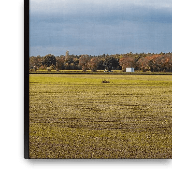 A beautiful image of a lone green tree in Drunen (North Brabant) with dark sky in the background. It is a beautiful interplay of blue and green and has a calming effect.