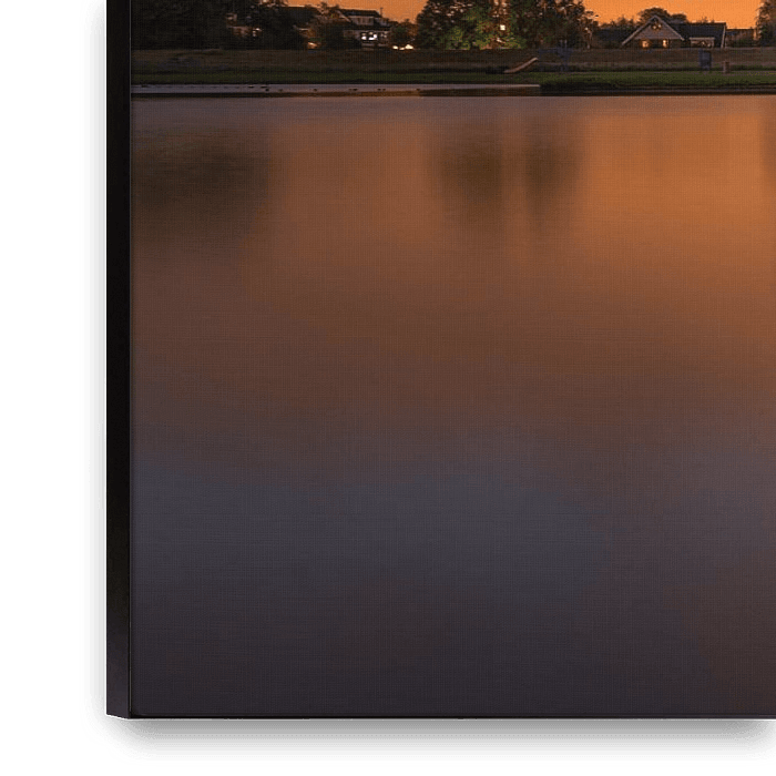The Ouderkerkerplas located just south of Amsterdam, at Ouderkerk. The picture was taken shortly after sunset; it was a cloudy evening and the orange sky was mainly caused by the reflection of the city lights.
