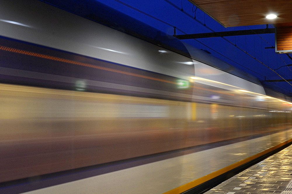 About "Trein vertrekt richting zuiden vanaf station Houten Castellum."