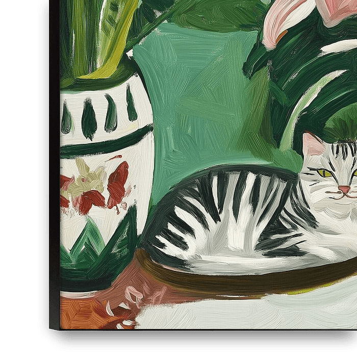 Buy this flower art Tropical Muse With Cat by SHANDU on canvas, ArtFrame, poster and wallpaper, printed on demand in high quality.
