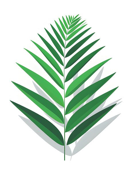 A vibrant illustration of a single palm leaf featuring elegant, pointed fronds in gradient shades of green. The symmetrical pattern and dimensional shadows create a fresh, tropical feel with a modern graphic style. Excellent for beach-themed decor, tropical designs, vacation-inspired spaces, or adding an exotic botanical touch to…