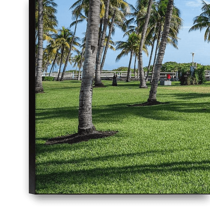 This colourful photo with tall palm trees was taken at Lummus Park off Ocean Drive in South Beach, while travelling in Miami, Florida.
