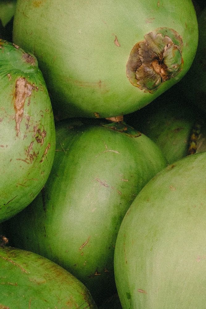 This picture brings tropical freshness right into your home - it shows a pile of green coconuts, as is typical in South East Asian markets. The rich green colours and the natural texture of the shells create an impression of originality, summer heat and an exotic lifestyle. Fresh coconuts not only provide refreshing coconut water, but also symbolise healthy nutrition, holiday dreams and sustainable enjoyment. The motif is particularly eye-catching for fans of food photography, nature and travelling to Asia. It is ideal for kitchens and public spaces where authenticity, colour and naturalness are desired. The image composition invites you to feel the taste of the south and awakens a longing for warm days on the beach, picnics under palm trees and colourful markets full of life and enjoyment.