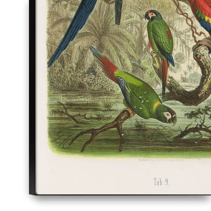 A painting made by the famous painter Anton Reichenow with the title tropical paradise birds, Anton Reichenow. Seen in the Vogelbracht exhibition in the Teylers Museum in Haarlem.