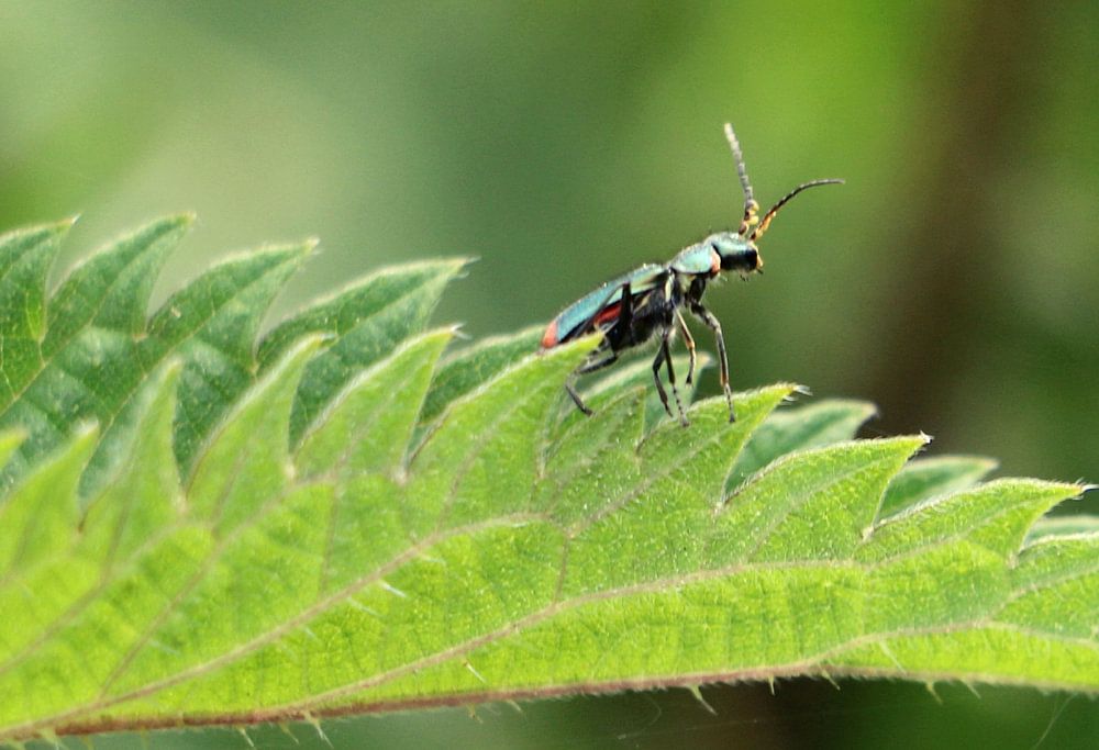 Op een brandnetelblad, opwarmend in de zon. Is dit kevertje geen plaatje?