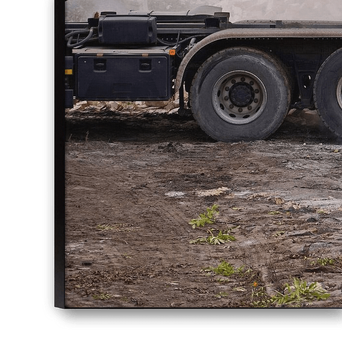 Buy the photo Truck on a construction site dumping a container with stones by Babetts Bildergalerie on canvas, ArtFrame, poster and wallpaper, printed on demand in high quality.